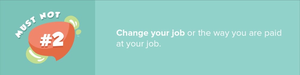 Lenders will have to track any changes to your annual income so if possible, refrain from changing jobs or changing how you are paid at your job, especially if you’re on salary-based income by the time of your application. You’ll want to avoid becoming self-employed during this time as well. If you must move to a different job as part of your long-time career plan, make sure that it’s within the same industry and that you can justify your move.