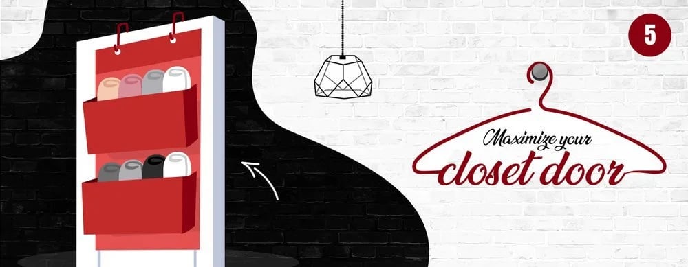 Lastly, speaking of making the most of all of your closet space, why not use the front of your closet door as well as the back? Consider adding hanging organizers, but instead of the usual clear plastic pouches, opt for more stylish options that are pretty enough to hang outside the closet, as well as the inside. These storage solutions are perfect for keeping your shoes, accessories, wallets, and all your favorite daily items organized for easy access, so you don't have to go digging through your closet to find them. Plus, they also make good use of otherwise unused door space.