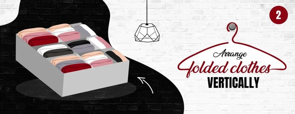 If you're thinking of a new way to make your clothes look neater and tidier while saving up valuable closet space, try the file-folding method made famous by world-renowned tidying expert Marie Kondo. Instead of stacking your folded clothes on top of each other, fold them in half once more and stack them up vertically so they’re side-by-side like files in a filing cabinet. It’s an efficient way to arrange your clothes as they’re folded the same way. Also, no more ripping through your drawers in search of your favorite shirt because it’s now easier to find what you’re looking for.