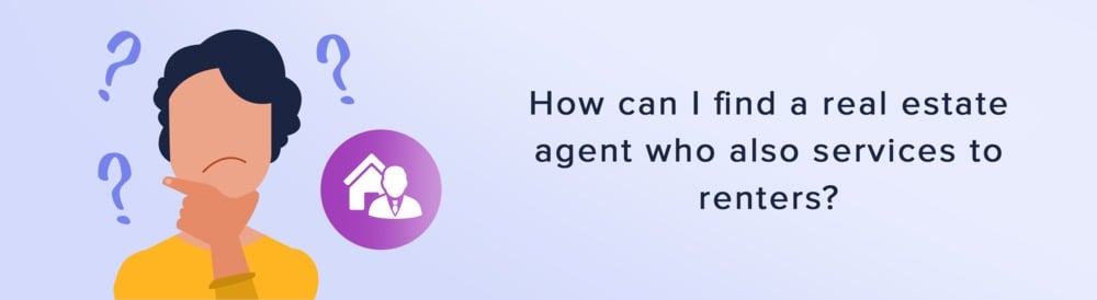 There are many ways to find a real estate agent who helps not only home buyers or sellers but also services renters. You can check online for local rental listings and websites of real estate firms. You may also know about reliable real estate agents from personal referrals. Ask your family or friends for the names of experienced agents whom they've already worked with when they bought or sold a home. Chances are, even if they don’t work with rentals, they probably have a colleague or a team member who also deals with rentals with whom they can connect you.