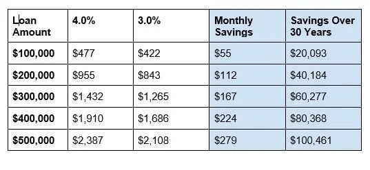 The chart below illustrates the potential savings when you decrease your mortgage rate by just one percentage point. When it comes to refinancing, the bigger the spread, the greater the savings.